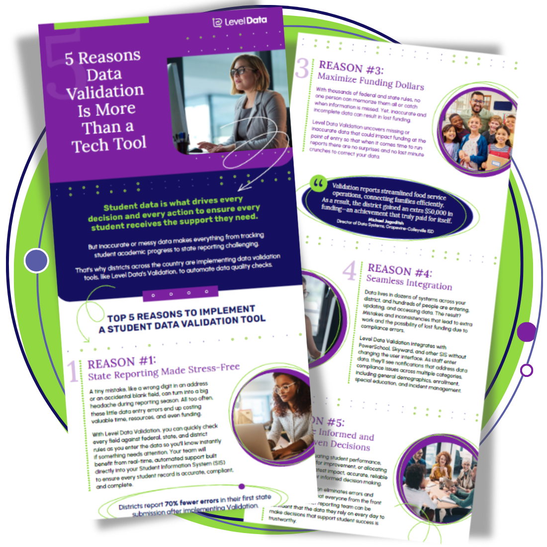 Download this infographic to see five reasons district leaders are turning to data validation solutions to improve accuracy and efficiency in their student data.