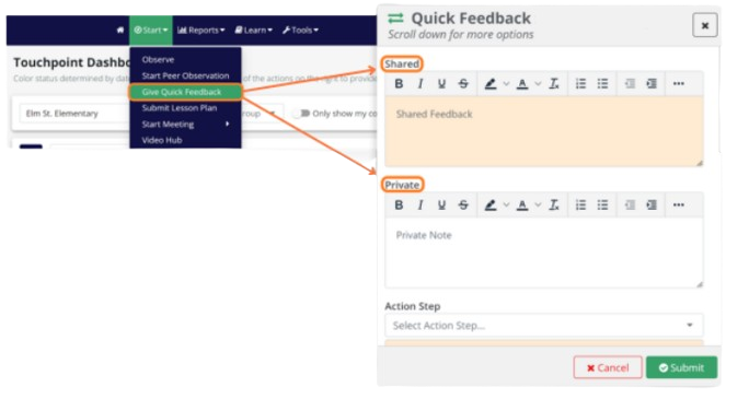 Quick Feedback is a fast, efficient way to informally share feedback without opening a full observation form.